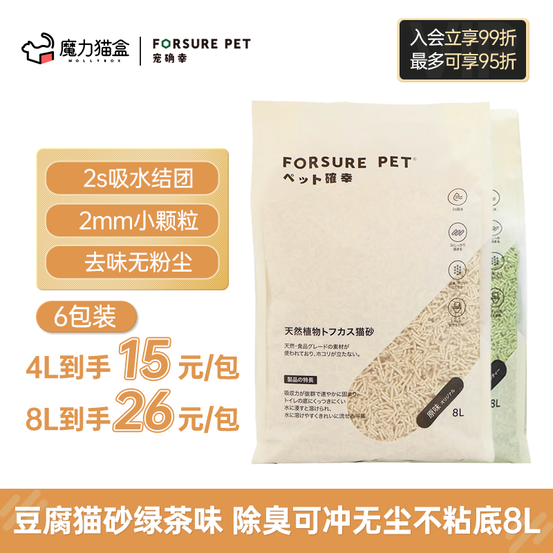 Forsure Pet 宠确幸豆腐猫砂 除臭猫砂可冲厕所无尘不粘底小颗粒豆腐砂 快速吸水 强力结团 6包 【混合猫砂】香甜玉米 3.2kg/8L