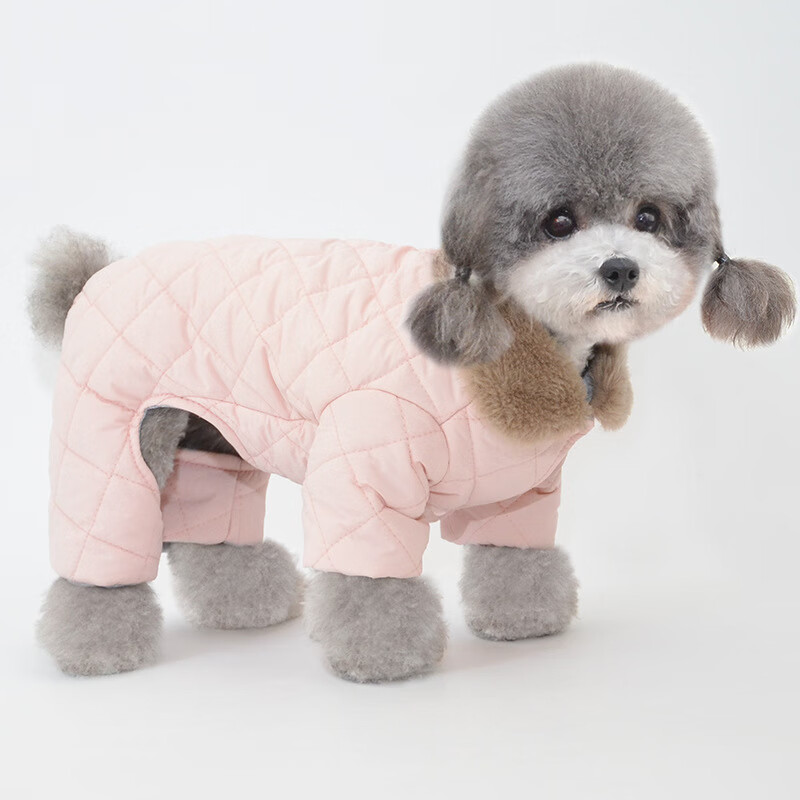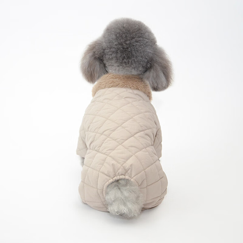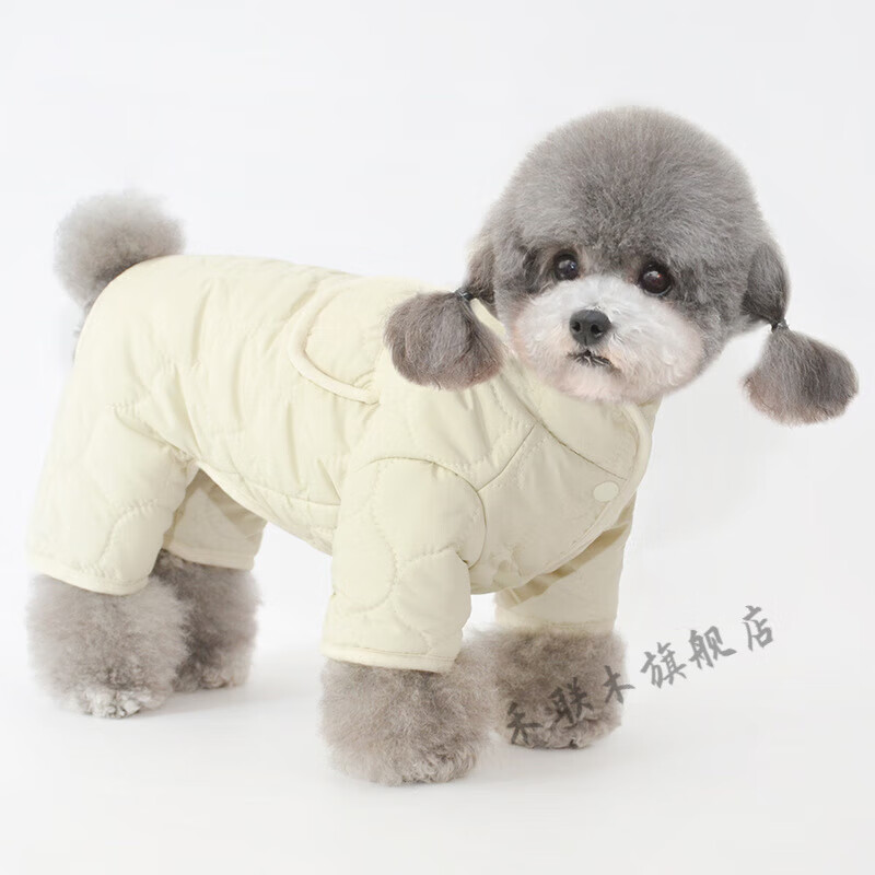 狗狗衣服秋季潮牌 冬季保暖狗狗四脚棉衣泰迪比熊博美棉服加厚加绒连体衣小狗衣服潮 米白色 XXL 胸围55背长40(适合16斤内
