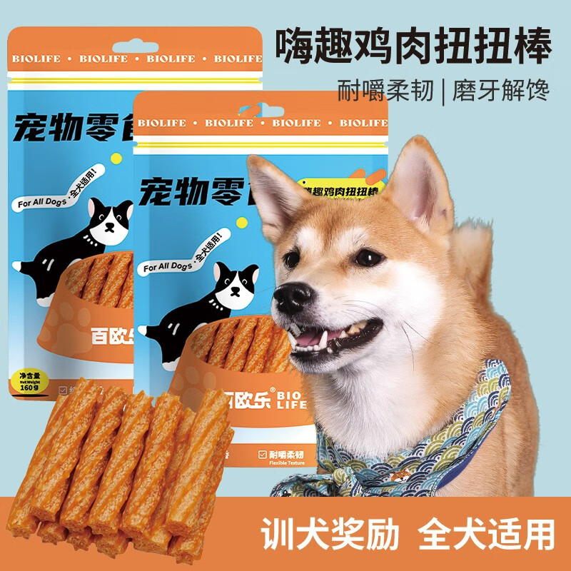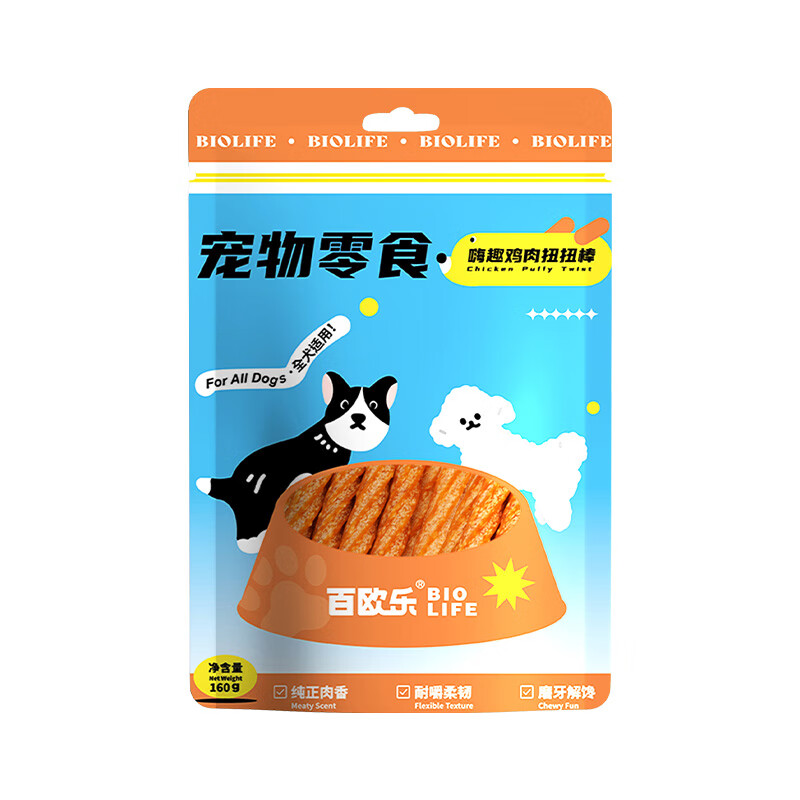 百欧乐鸡肉扭扭棒磨牙棒狗狗零食威济虎牙扭棒宠物洁齿骨小型犬训狗零食 鸡肉扭扭棒 160克