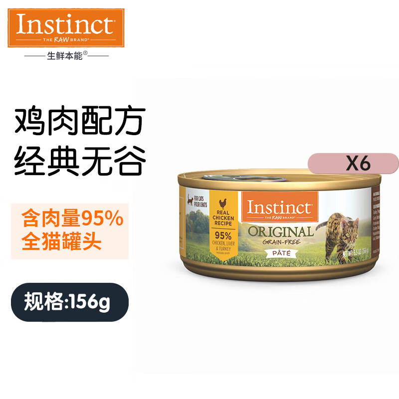 INSTINCT生鲜本能 百利猫罐头 进口高营养 宠物零食猫零食 156g/罐 6罐 经典无谷系列 鸡肉罐头