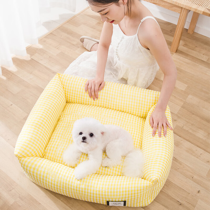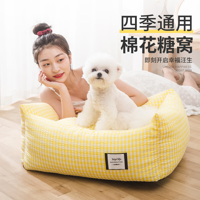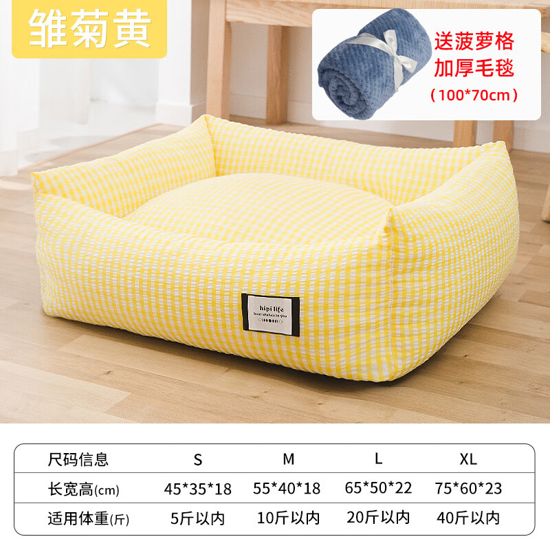 嬉皮狗狗窝四季通用可拆洗冬季保暖狗狗床小型犬猫窝宠物床泰迪狗狗用品 暖心黄( 毛毯) S(建议体重5斤之内)