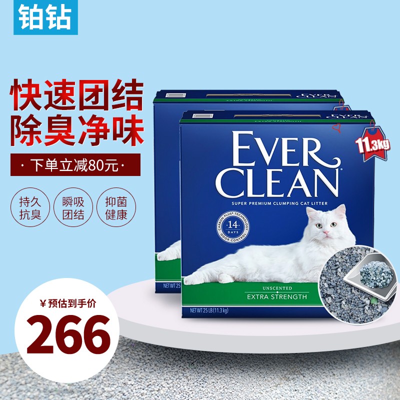 铂钻猫砂25磅膨润土低尘高效除臭细砂紫标瞬吸11.3kg2箱 绿标细砂-25磅(2箱组合装)