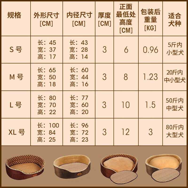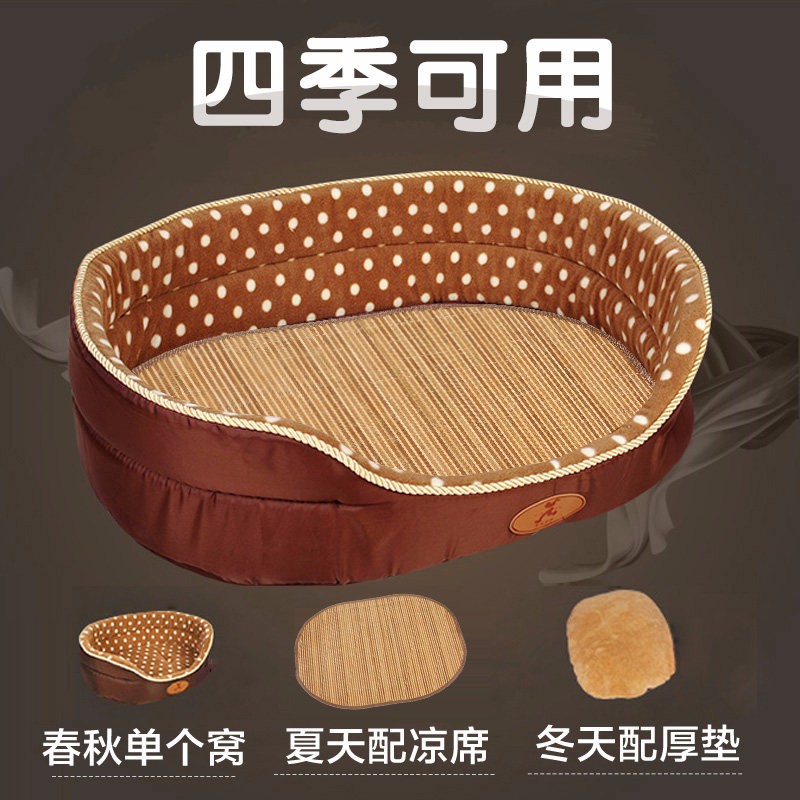 华元 猫狗窝春夏季宠物可拆洗泰迪小狗宠物网红博美柯基大型犬金毛拉布拉多四季通用凉窝凉席 驼色波点 凉席 L-80cm(50斤内)