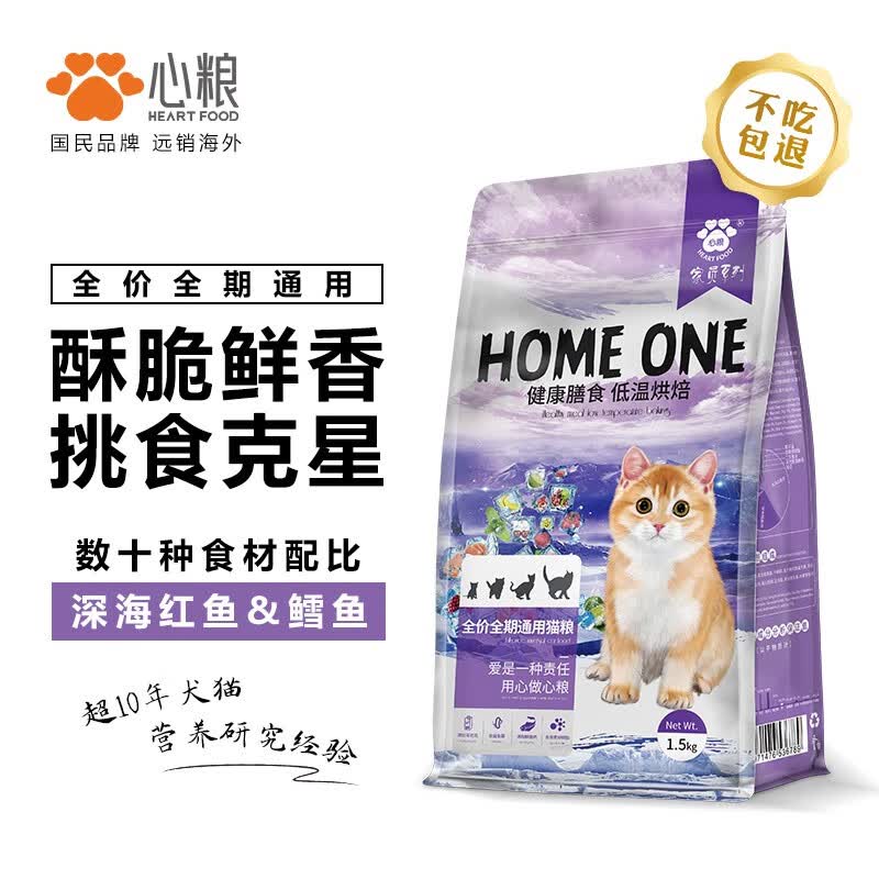 心粮 全价全期通用烘焙猫粮1.5kg 成猫幼猫通用 英短蓝猫波斯猫土猫粮 鱼肉味3斤