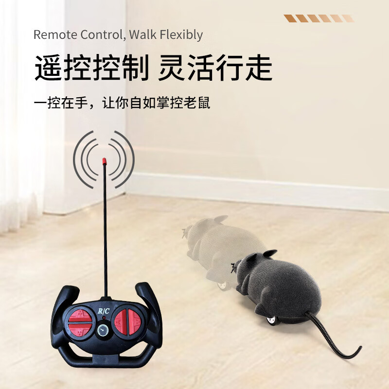网红逗猫神器仿真动物吓人玩具儿童礼物智能电动男女小孩 遥控老鼠棕色二通 标配:没电池, 螺丝刀