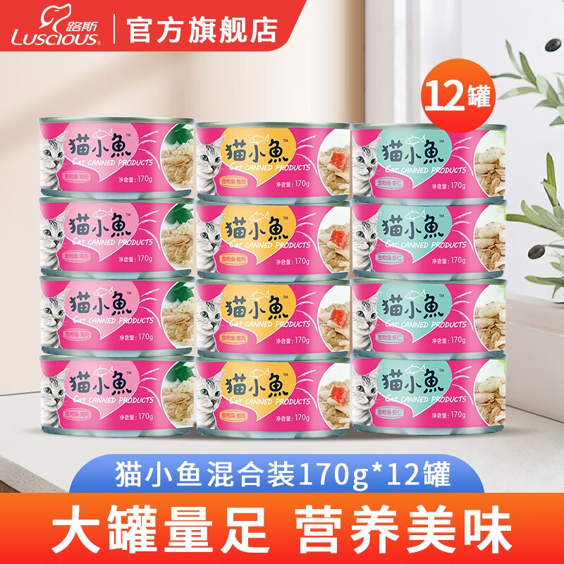 路斯猫咪零食猫罐头猫粮通用猫咪主食浓汤金枪鱼鸡肉营养湿粮罐头 金枪鱼鸡肉 蟹肉 虾仁各4罐