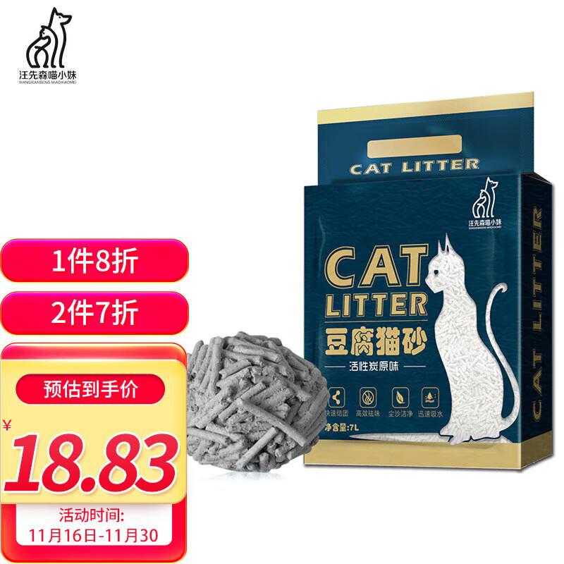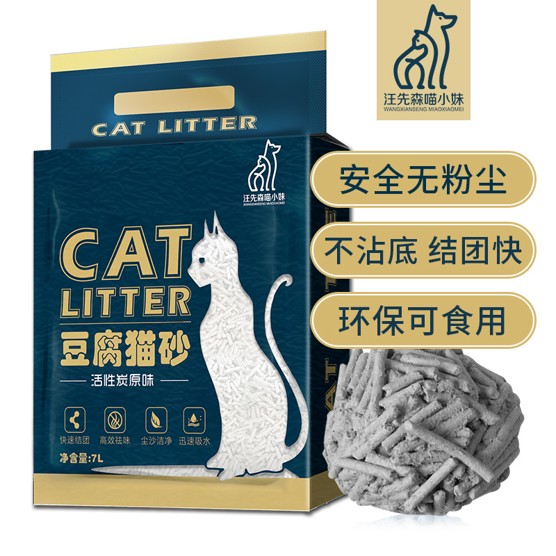 汪先森喵小妹 原味活性炭2.0黄豆豆腐猫砂 大颗粒吸水结团无尘可冲厕所猫咪用品2.7kg/袋
