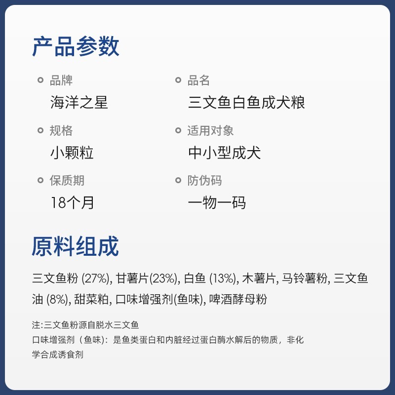 海洋之星 三文鱼深海白鱼中小型犬幼犬成犬天然无谷狗干粮泰迪柯基狗粮 深海白鱼成犬小颗粒12kg
