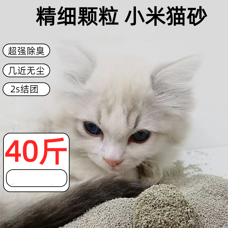 CLCEY猫砂砂除臭大袋无尘秒结团膨润土40斤细小颗粒不沾底 咖啡味小米猫砂10斤 新款