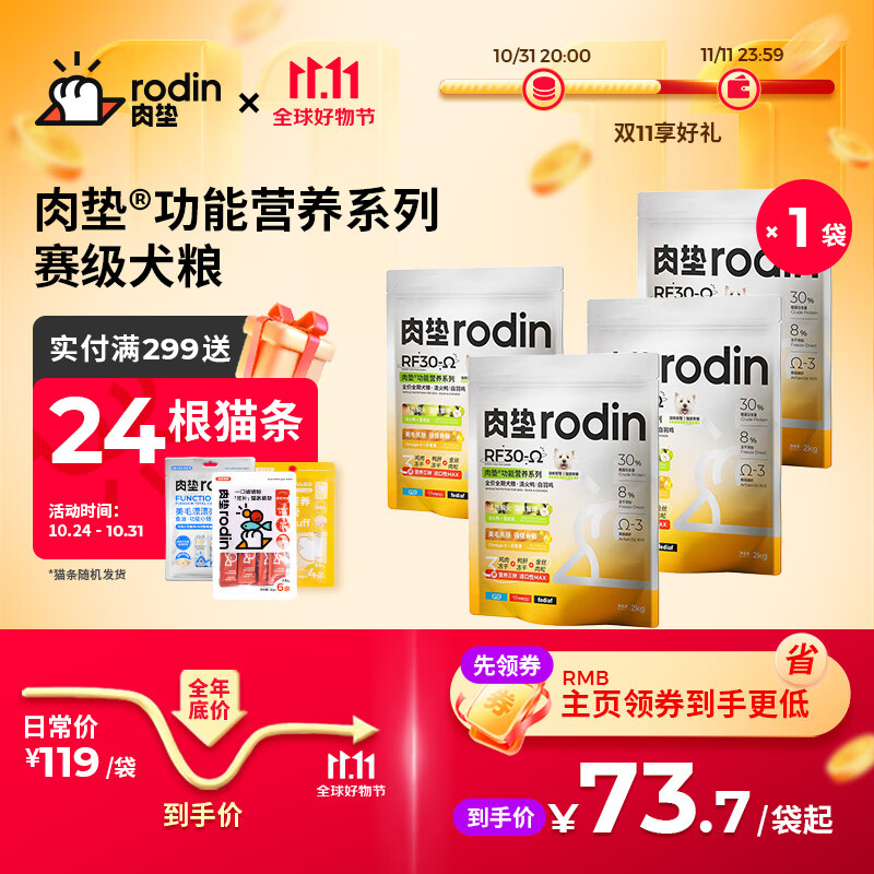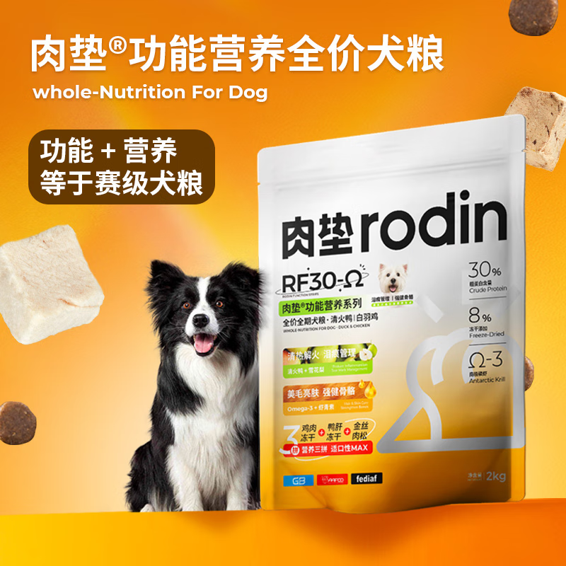 肉垫RodinRF30-Ω功能营养系列全价全期犬粮 清火鸭 白羽鸡 2kg 清火鸭 白羽鸡 2kg*1袋 2kg