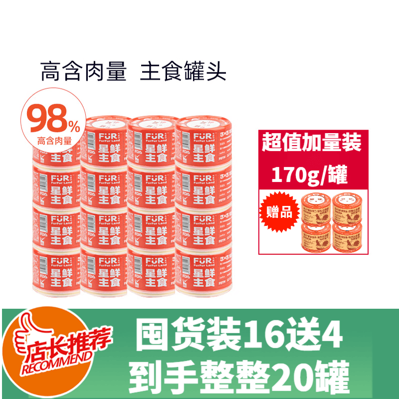 毛星球(FurFur Land)主食猫罐头成猫幼猫营养鸡肉牛肉鸭肉鳕鱼无谷湿粮补水小红罐 现货随机170g*16罐