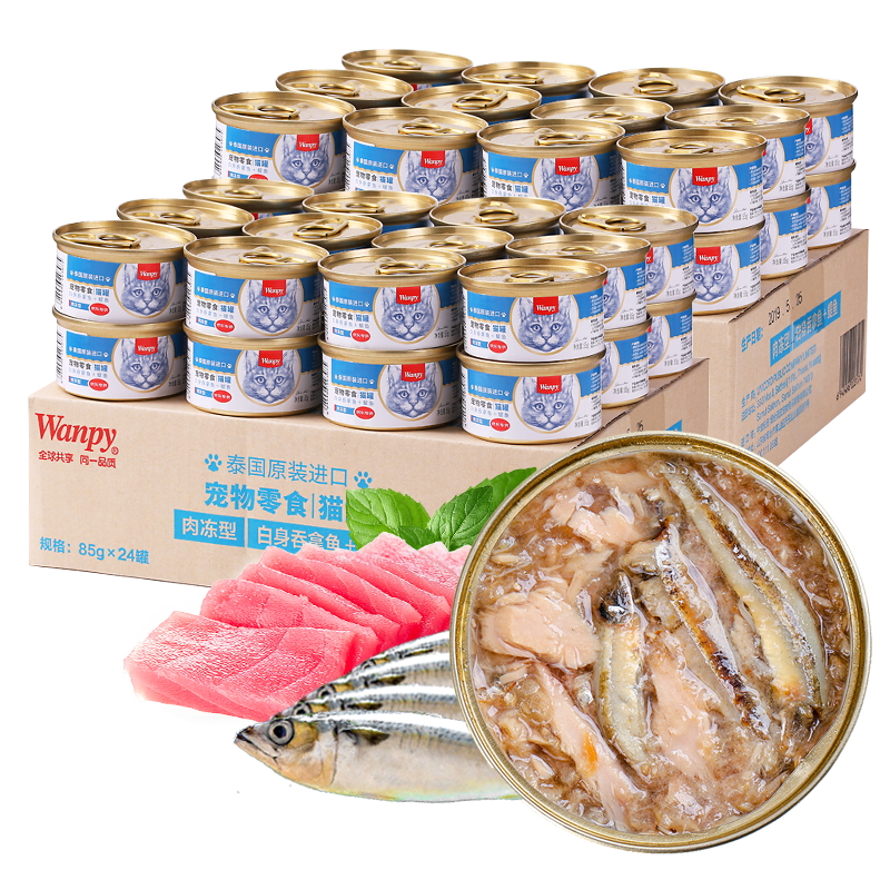 泰国进口 顽皮(Wanpy)猫罐头85g*48罐 白身吞拿鱼 鳀鱼罐头(肉冻型) 成幼猫宠物猫咪零食湿粮
