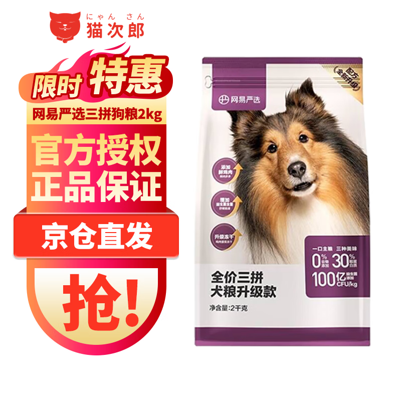 网易严选 狗粮 无谷牛肉鸡肉三拼全价犬粮小型中大型成犬幼犬通用 2kg 【推荐】三拼犬粮 2kg*1包