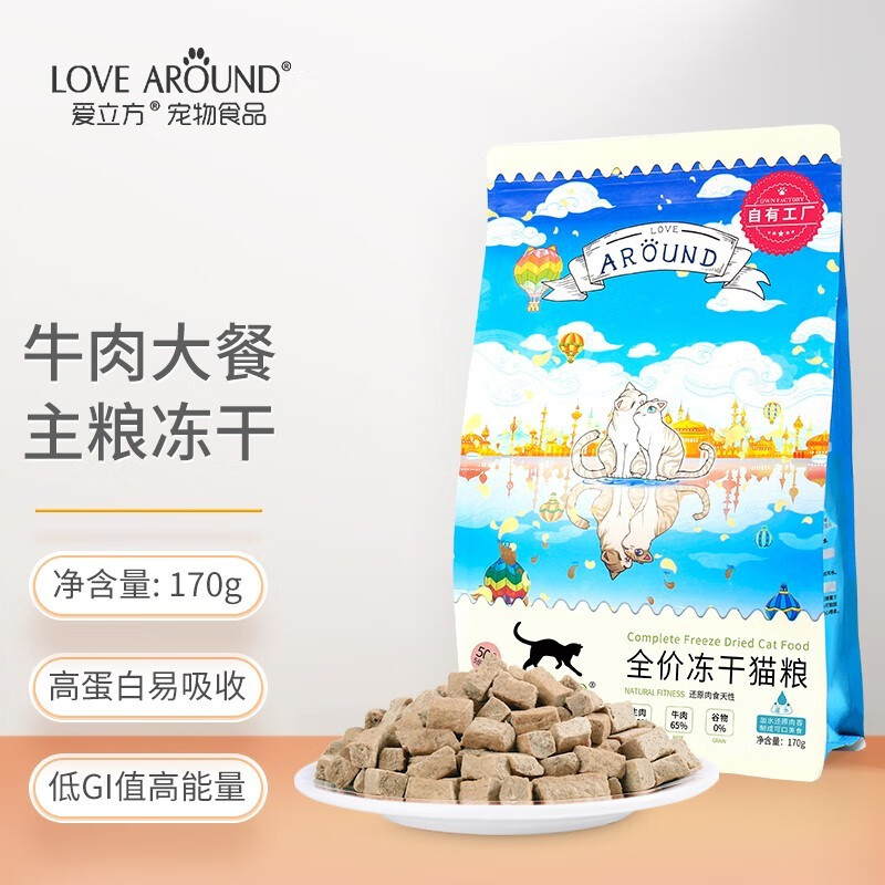 爱立方冻干生骨肉猫零食鸡肉鸭肉牛肉海洋盛宴冻猫咪主食冻干零食 牛肉 170g【保质期至23年12月】