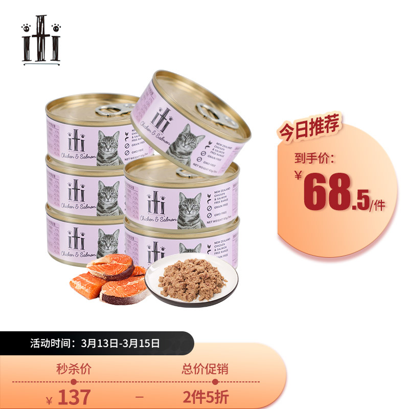 依蔕iti 猫粮 猫罐头 鸡肉三文鱼85g*6 宠物成幼猫零食营养主食湿粮罐