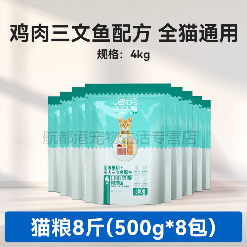 迪尤克猫粮全阶段全价通用4kg海洋鱼味8斤营养增肥发腮成猫幼猫粮 鸡肉三文鱼配方1斤装×8包 4kg