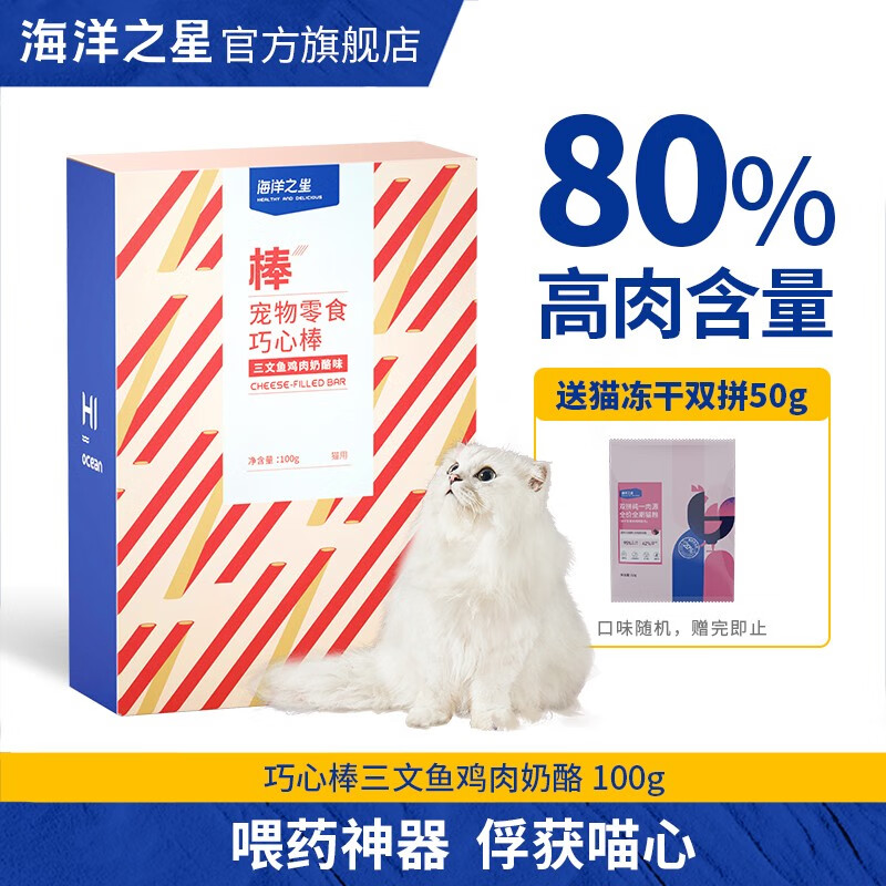 海洋之星猫条 猫冻干零食 深海鱼肉巧心棒 三文鱼鸡肉奶酪 10g*10支