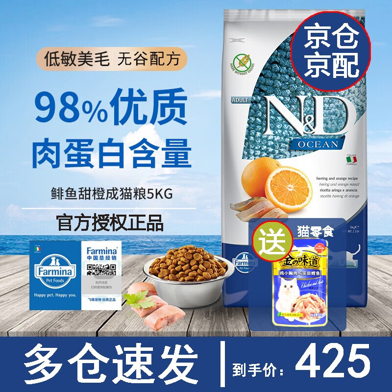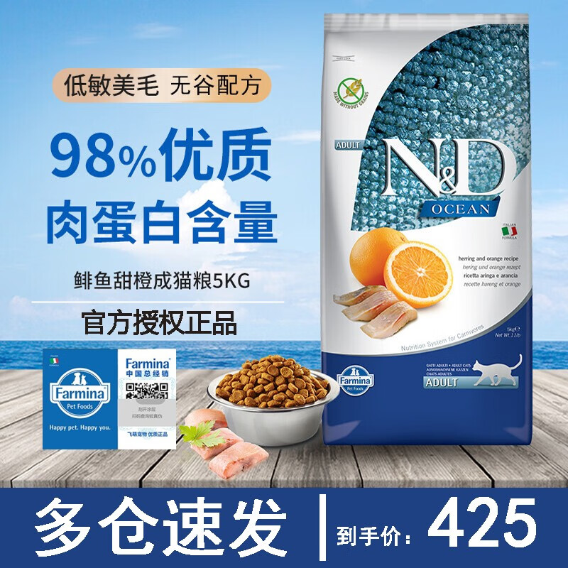 法米娜【飞萌标】猫粮 Farmina意大利进口法明娜天然精华无谷幼猫成猫粮 成猫鲱鱼甜橙5kg【23年11月】
