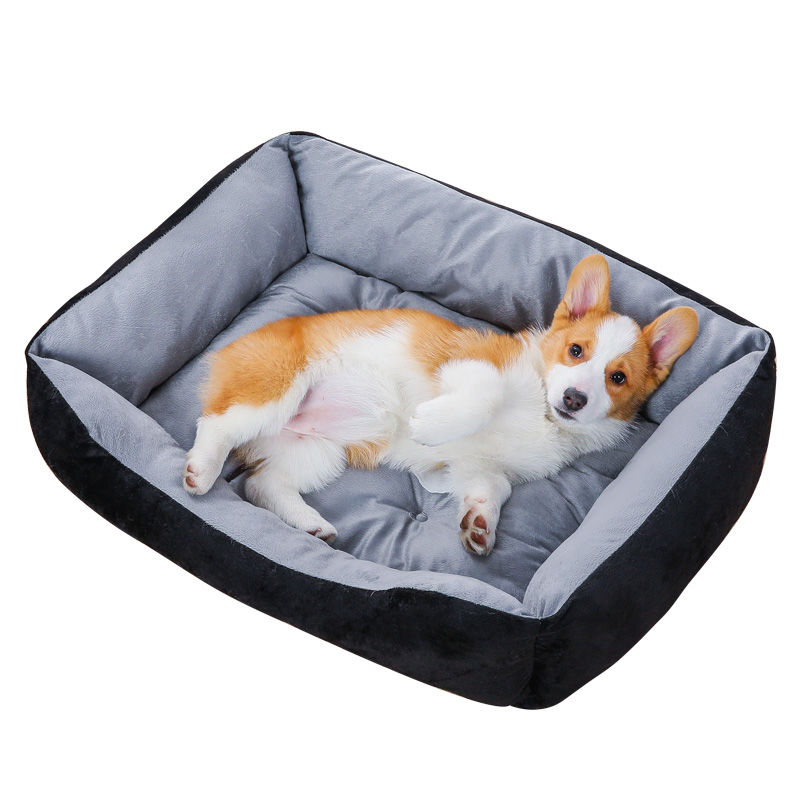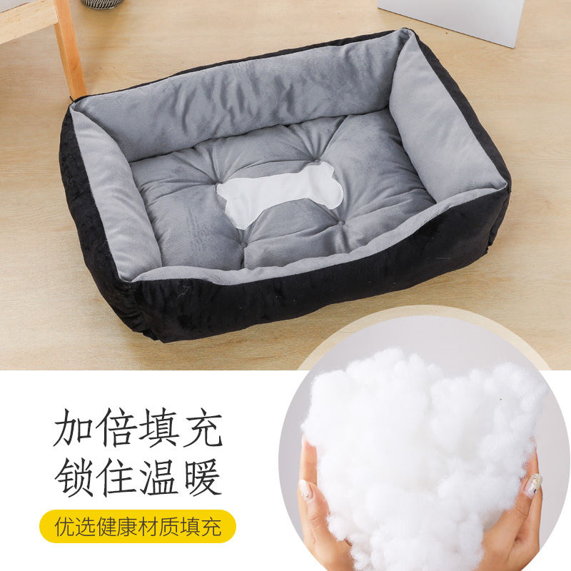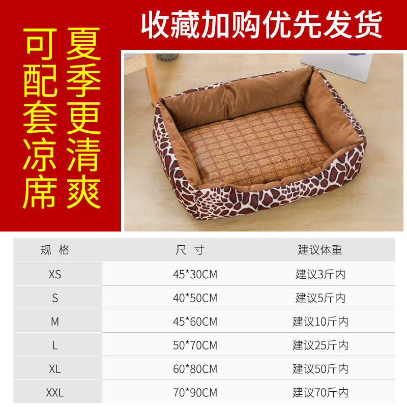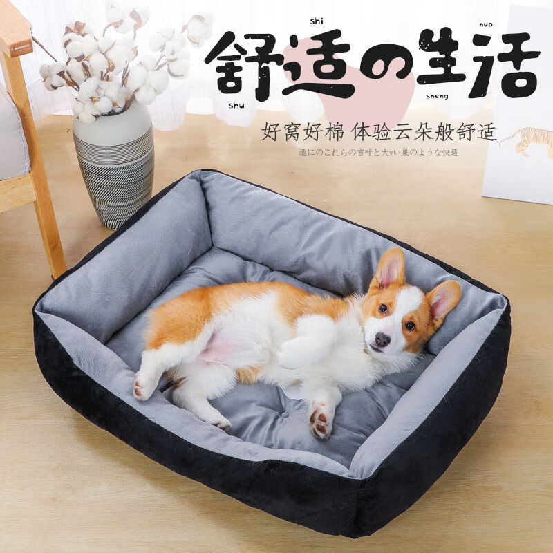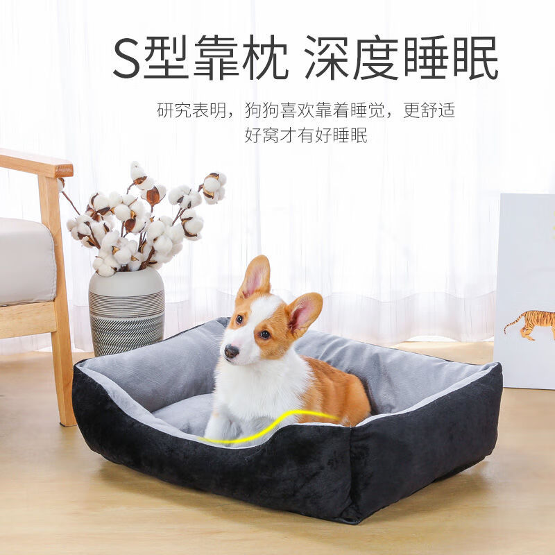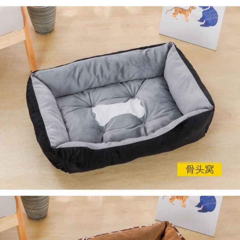狗窝猫窝夏季凉窝大型犬狗床宠物床狗屋沙发窝狗垫耐咬宠物窝四季 黑色骨头 毛毯 凉席 L号70-50CM 建议25斤内宠物