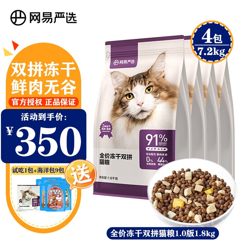 网易严选猫粮【有试吃】全价冻干双拼猫粮 无谷鲜肉冻干猫主粮成猫幼猫粮 冻干双拼猫粮1.8kg*4包