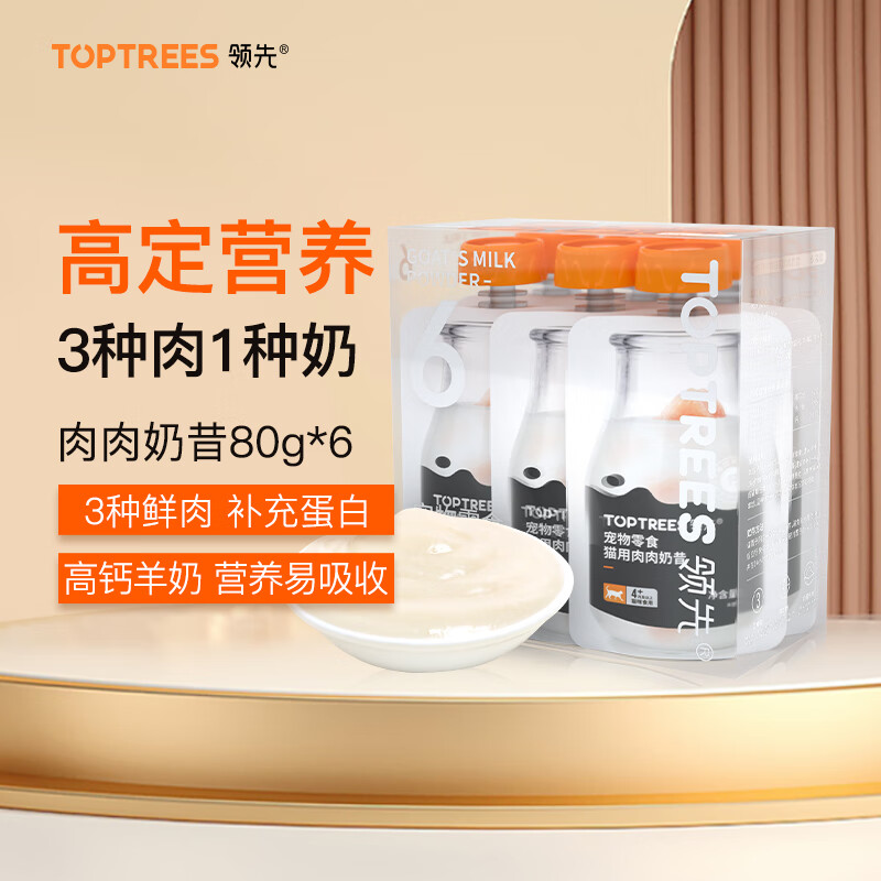 领先( Toptrees)猫零食 湿粮 猫条 流质零食 鳕鱼鸡肉兔肉羊奶 高蛋白肉肉奶昔80g*6袋