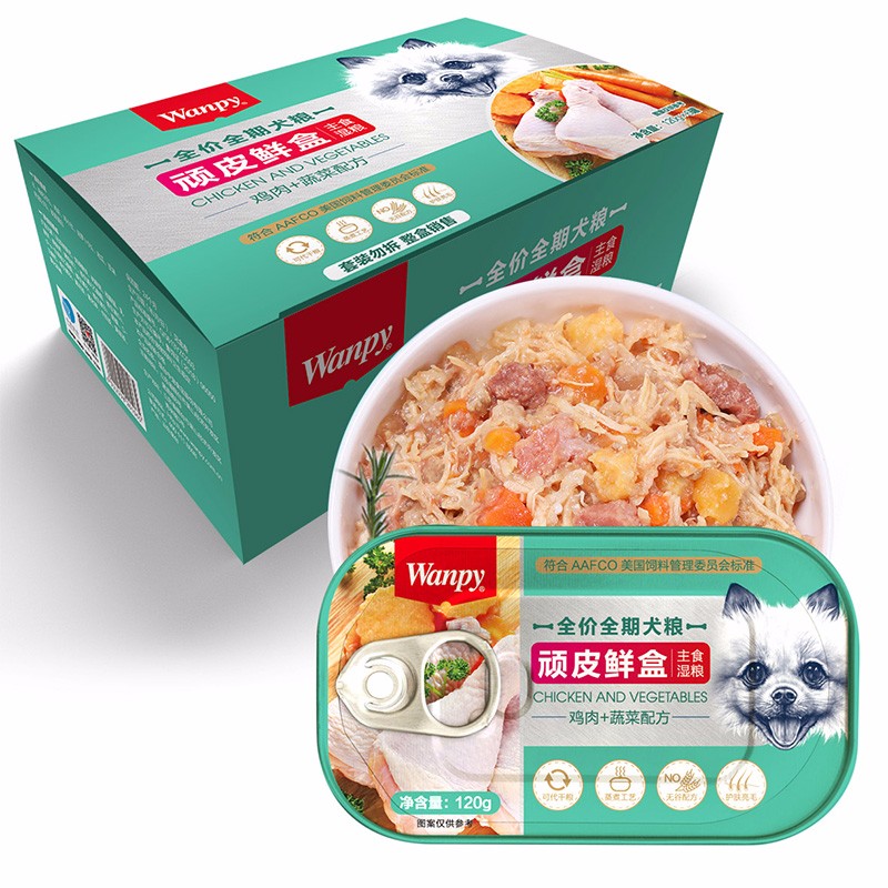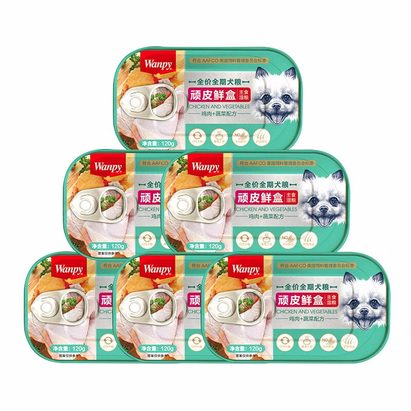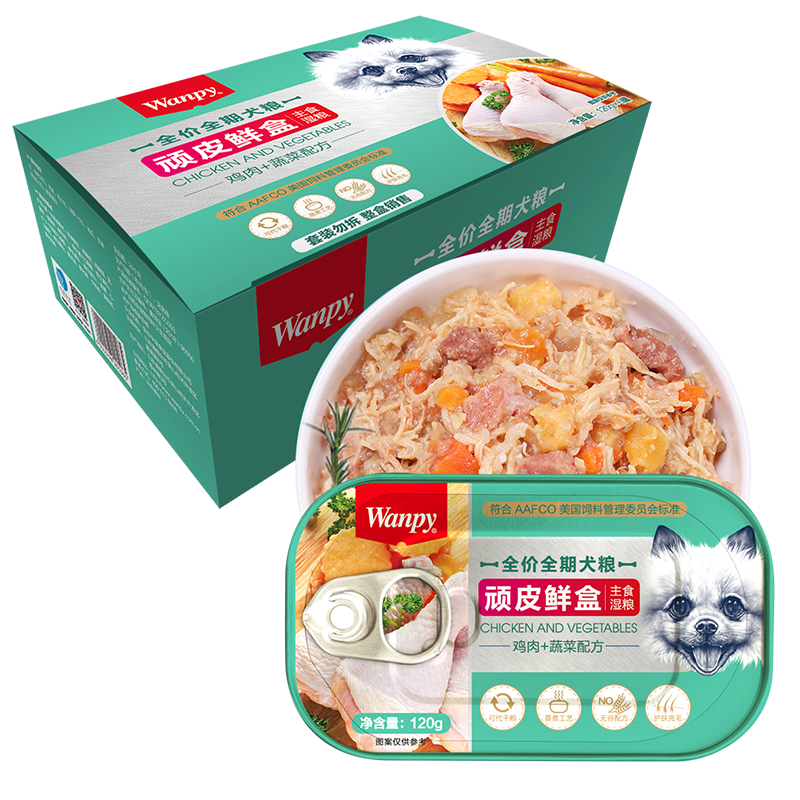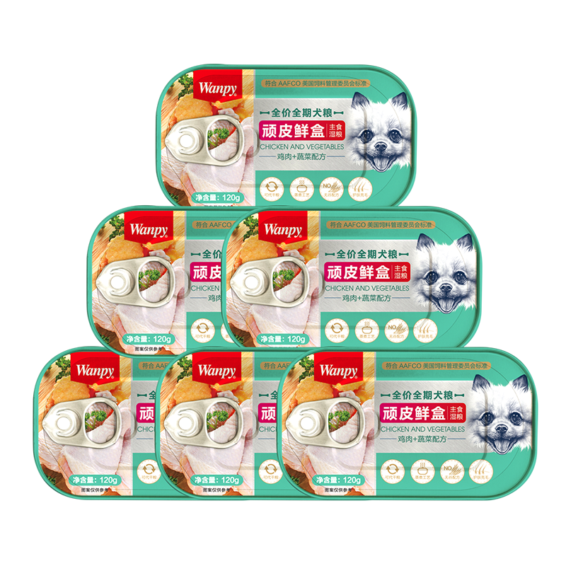 顽皮(Wanpy)鲜盒主食罐宠物狗零食主粮鲜盒金毛泰迪狗粮鸡肉120g 鸡肉+蔬菜 6罐