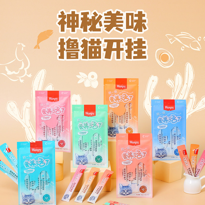 wanpy顽皮欧一吸猫条猫咪零食湿粮鲜封包100支整箱旗舰店同款试吃