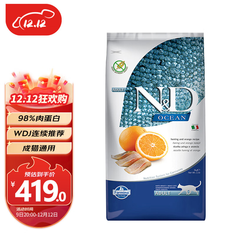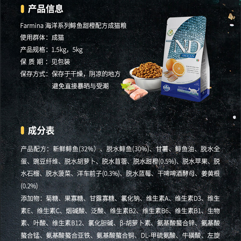 法米娜(farmina)猫粮 意大利进口成猫无谷粮 成猫粮|鲱鱼甜橙5kg