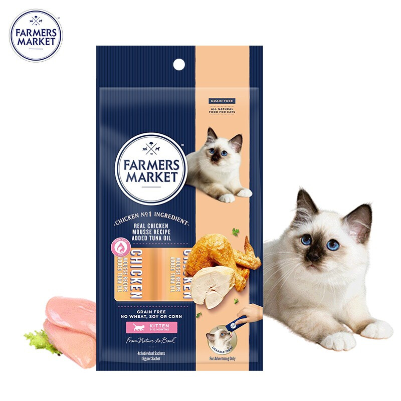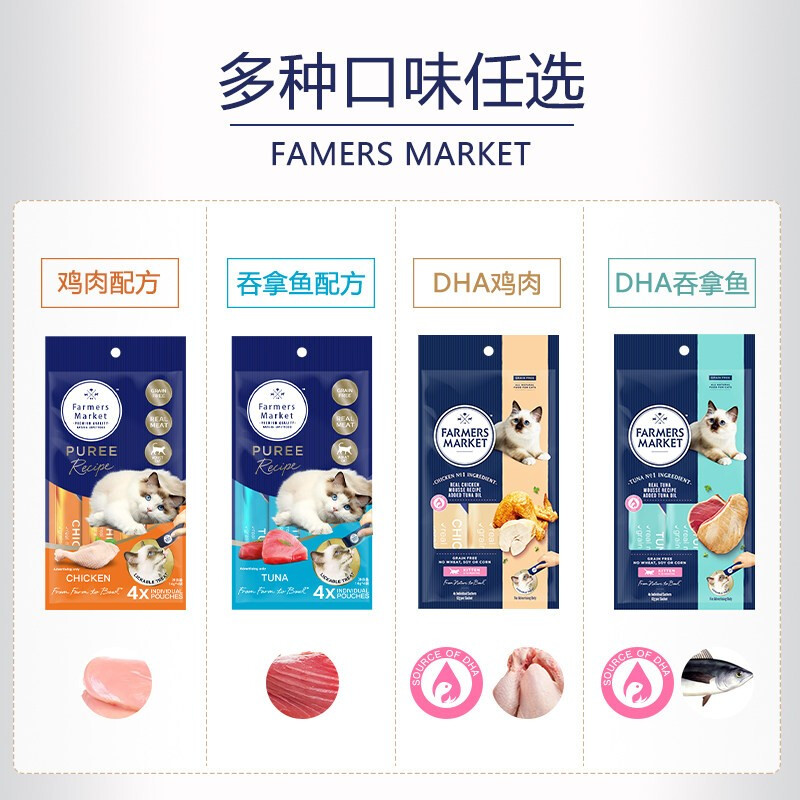 FarmersMarket蓝宝食流质猫条鸡肉猫湿粮猫零食纯肉配方成猫幼猫营养原装进口 鸡肉幼猫猫条12g*4(添加DHA)