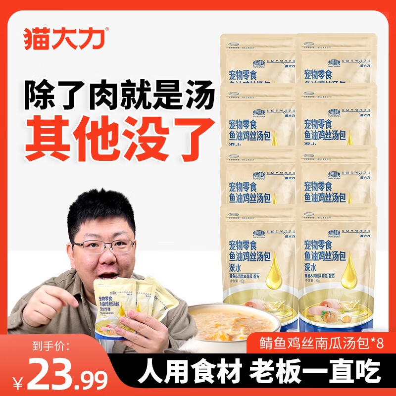 猫大力猫咪零食补水汤包猫粮猫罐头幼猫成猫增肥猫条湿粮主食猫饭 鲭鱼鸡丝南瓜汤包*8