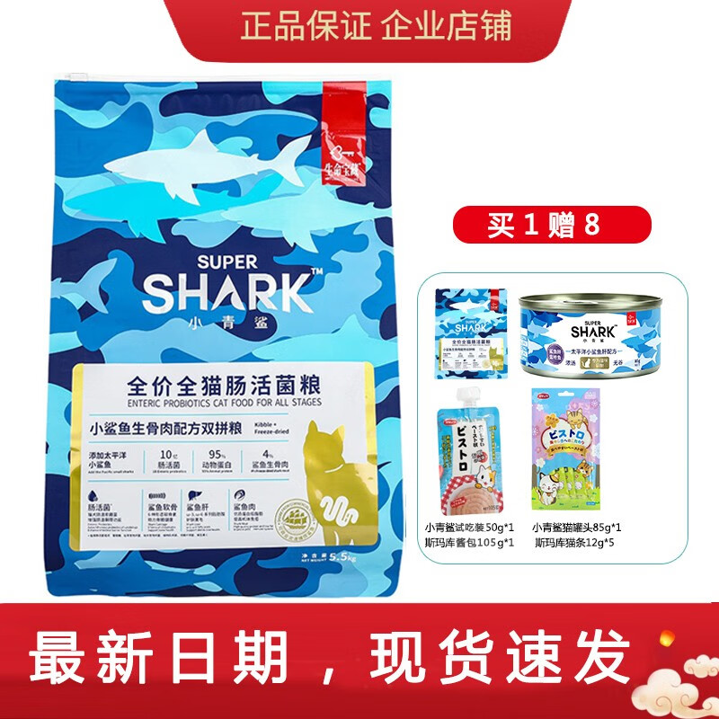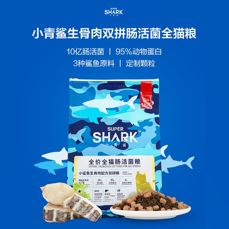 小青鲨 猫粮小鲨鱼冻干双拼肠活菌舒泪菌肉松猫粮全价成幼猫粮 全价全猫肠活菌粮5.5kg