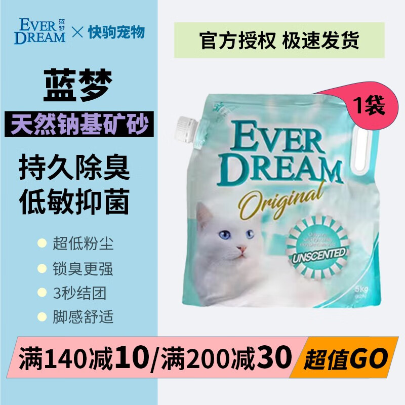 蓝梦(EVER DREAM)蓝梦猫砂天然钠基矿砂everdream抑菌活性炭除臭膨润土猫咪 小苏打袋装5kg*1袋