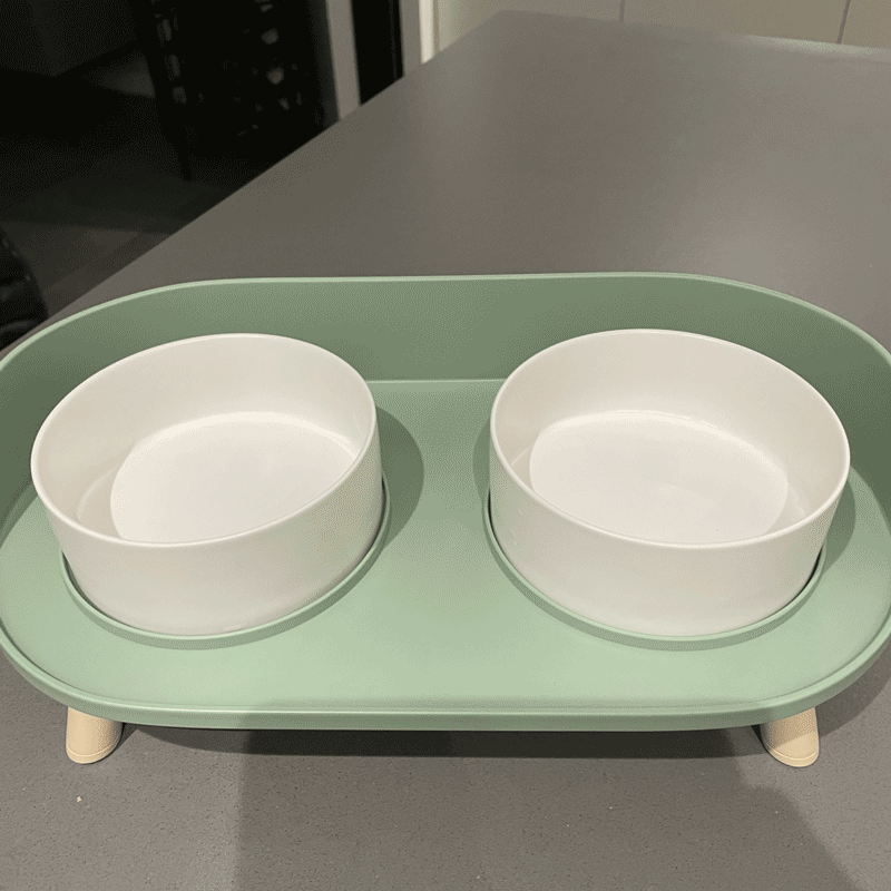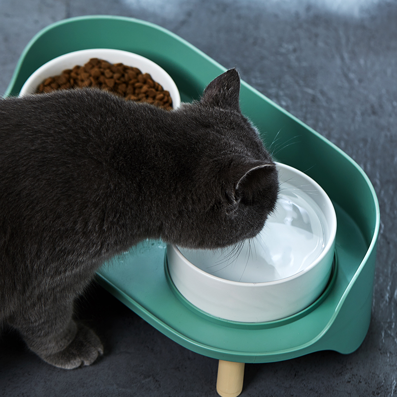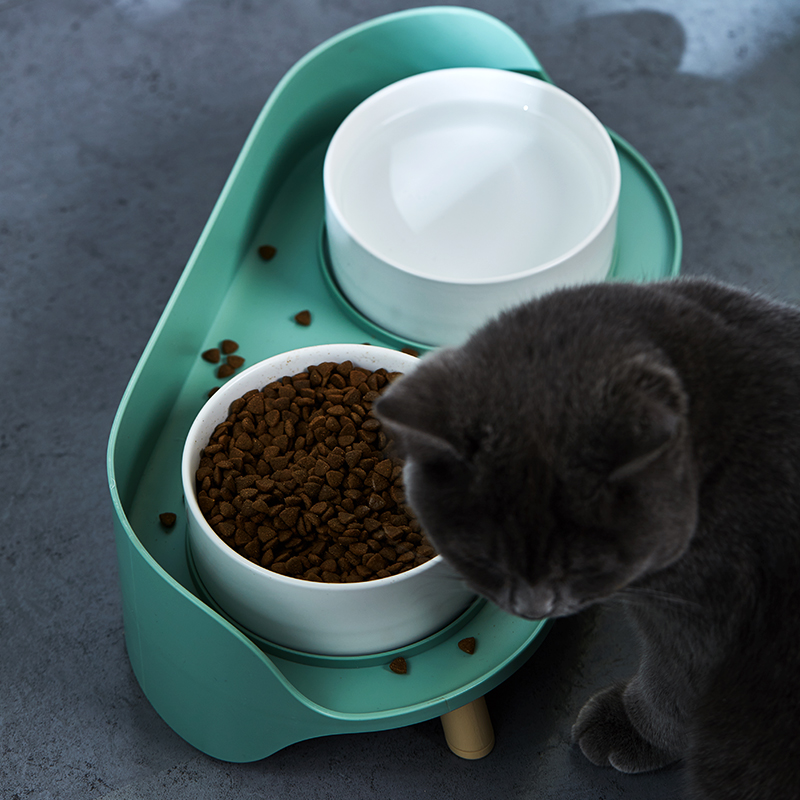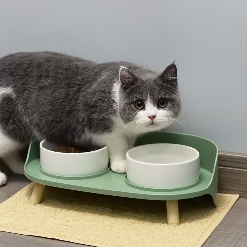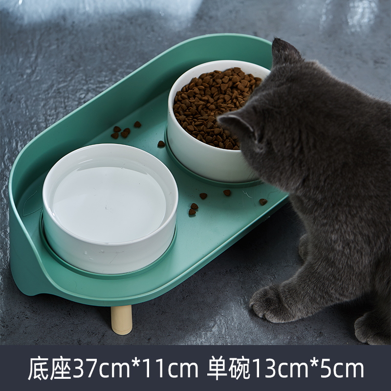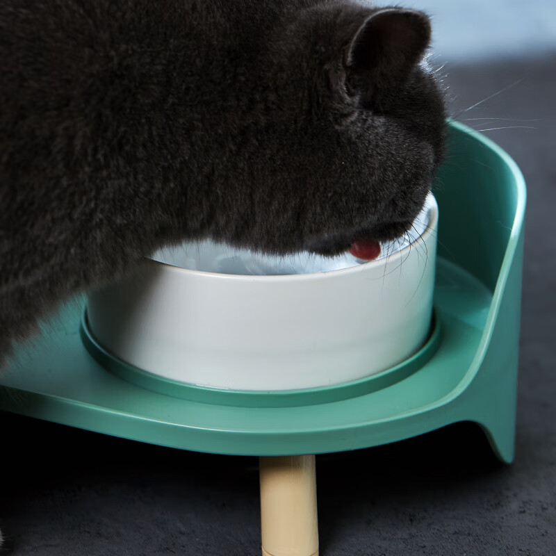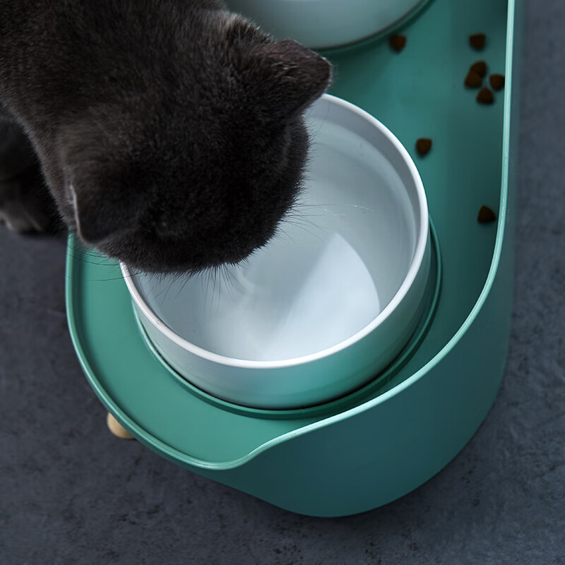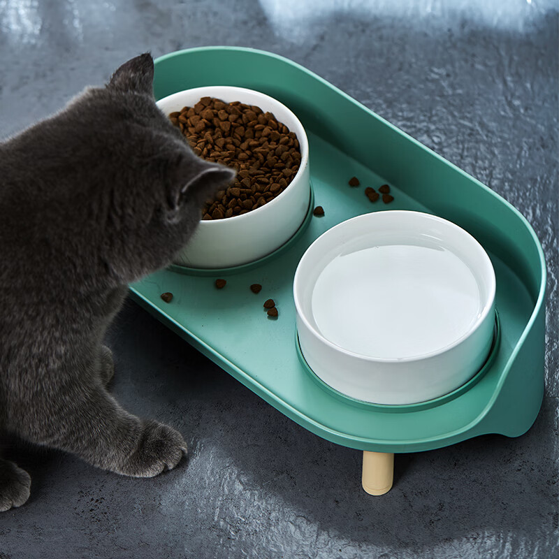 汤琪宠物猫碗狗碗猫咪自动饮水器猫狗食盆猫粮盆宠物用品喂食器饭盆喝水碗 灰绿色月半双碗
