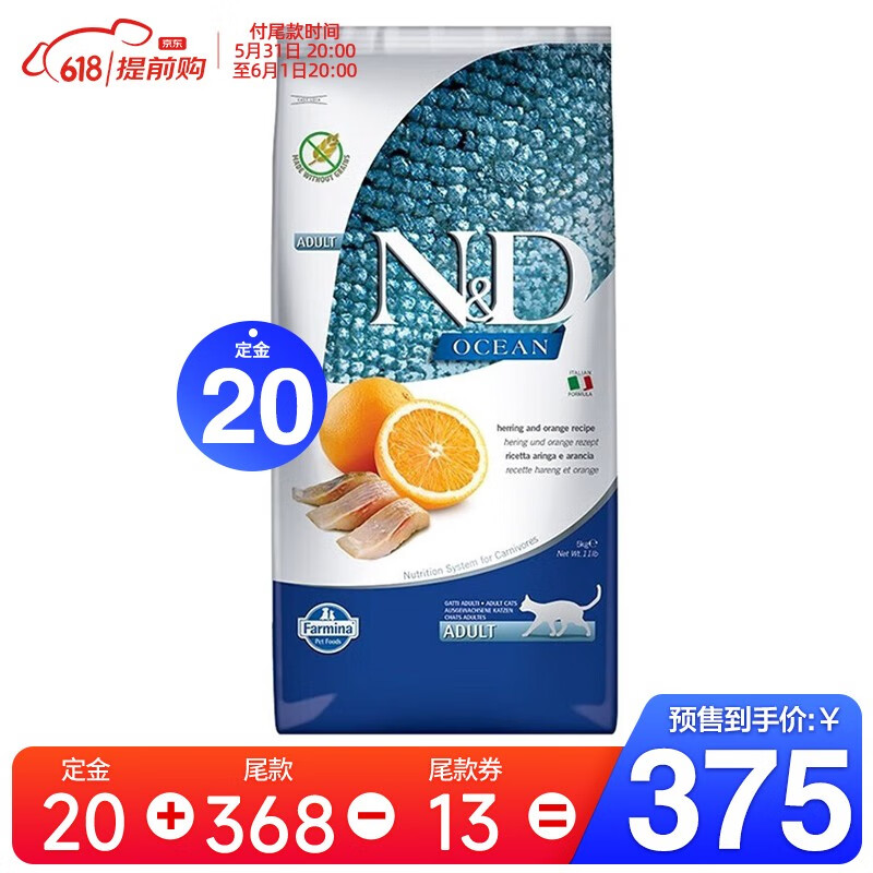 法米娜法明娜猫粮 意大利进口成猫无谷粮【保质期至12月】 鲱鱼甜橙成猫粮5kg