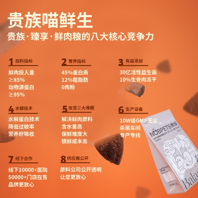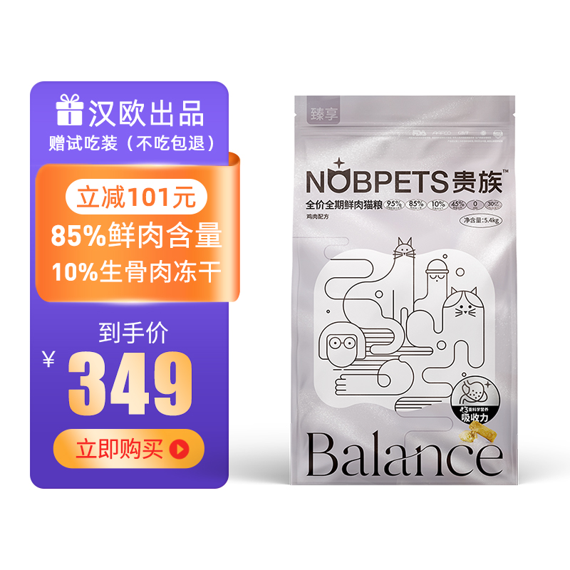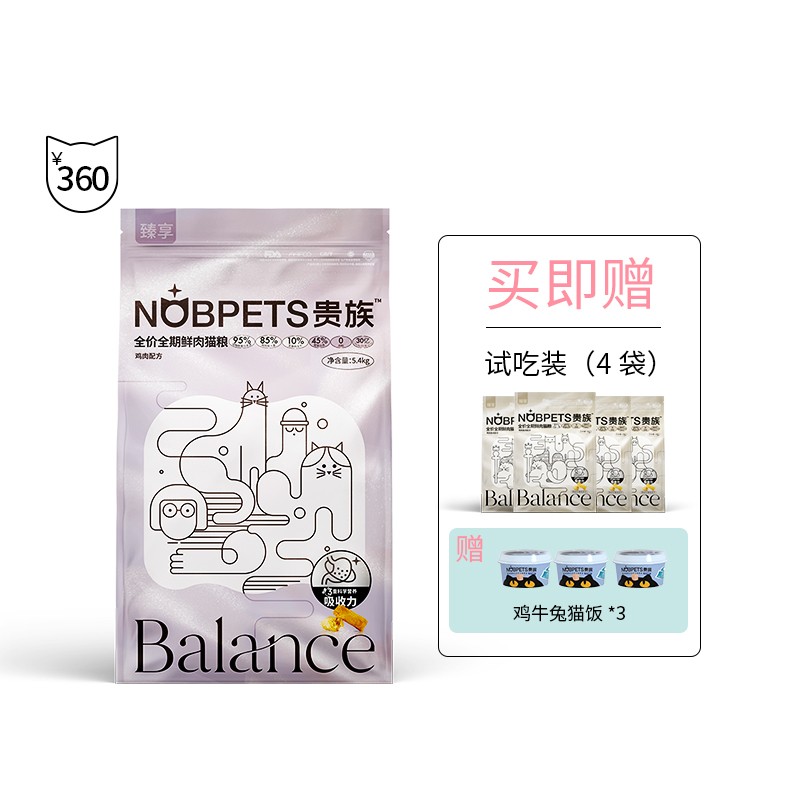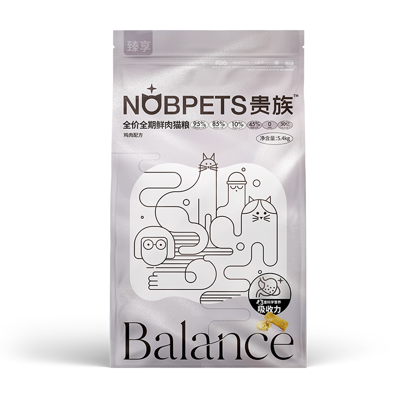 贵族NOBPETS 鲜肉猫粮 成猫冻干生骨肉 95双拼鲜肉粮 全价无谷 成猫/幼猫 奶糕全期猫粮 贵族臻享鲜肉猫粮鸡肉配方5.4kg