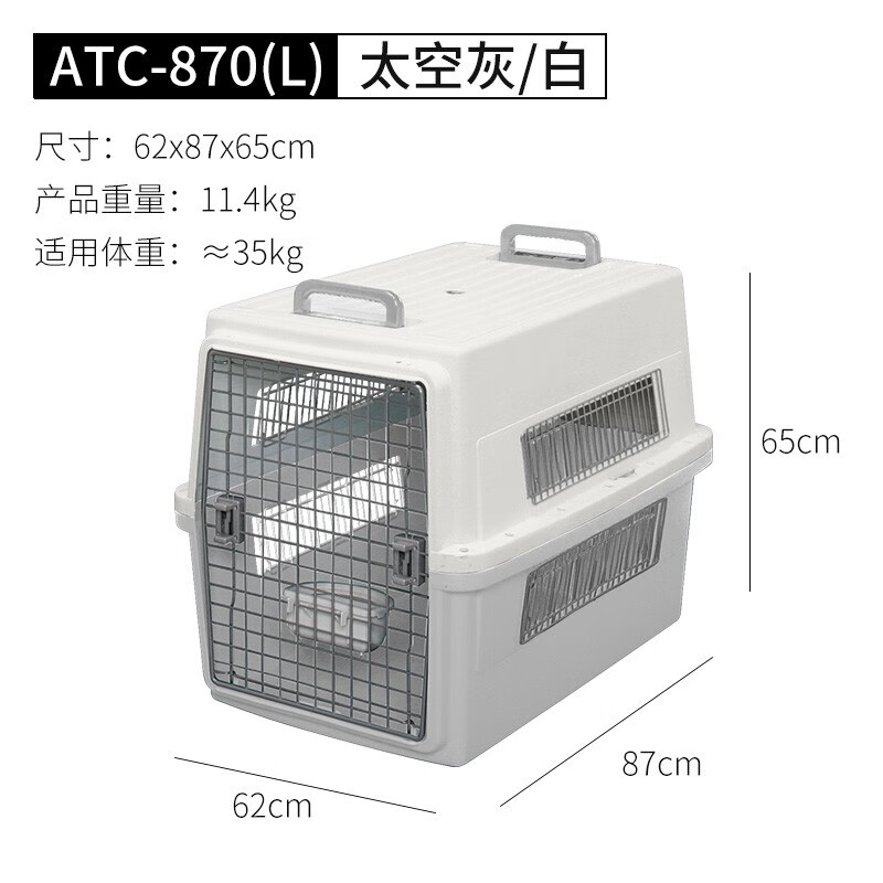 爱丽思宠物航空箱狗狗猫咪猫包外出箱子托运箱旅行箱运输猫笼子便携【出口款】 太空灰/白870(约35kg用)