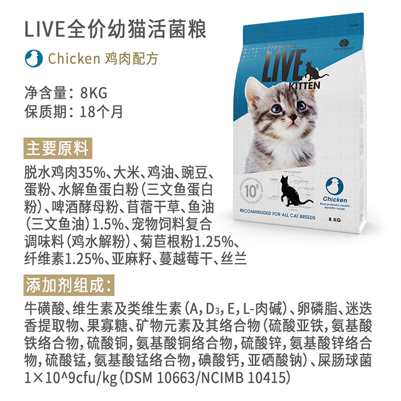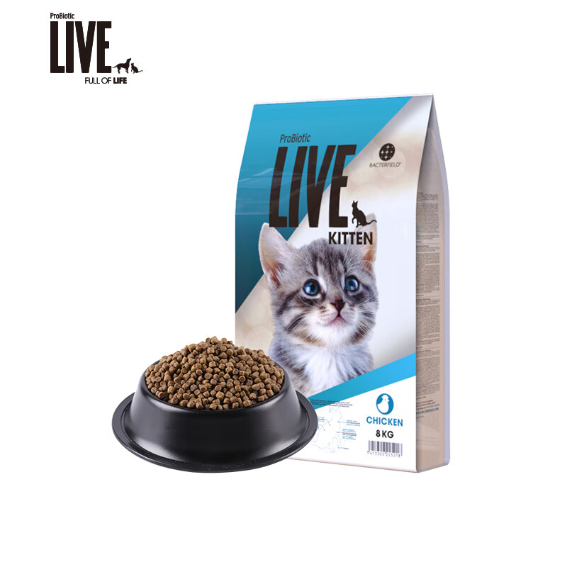 ProBiotic LIVE FULL OF LIFELive猫粮 西班牙进口成猫幼猫通用活菌粮 鸡肉味|幼猫粮8kg【5月28到期】