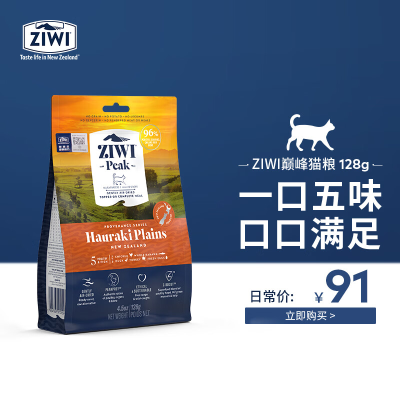 滋益巅峰(ZIWI)全阶段无谷风干赫拉奇平原猫粮128g 布偶加菲英短美短幼猫成猫