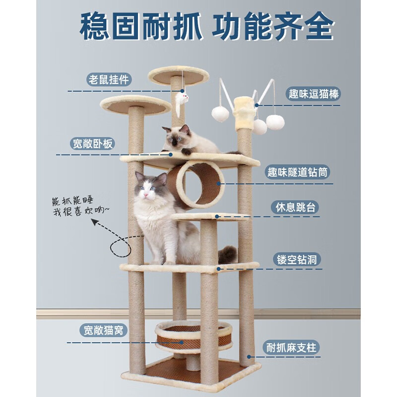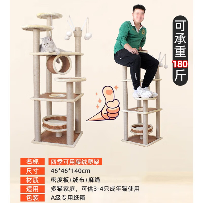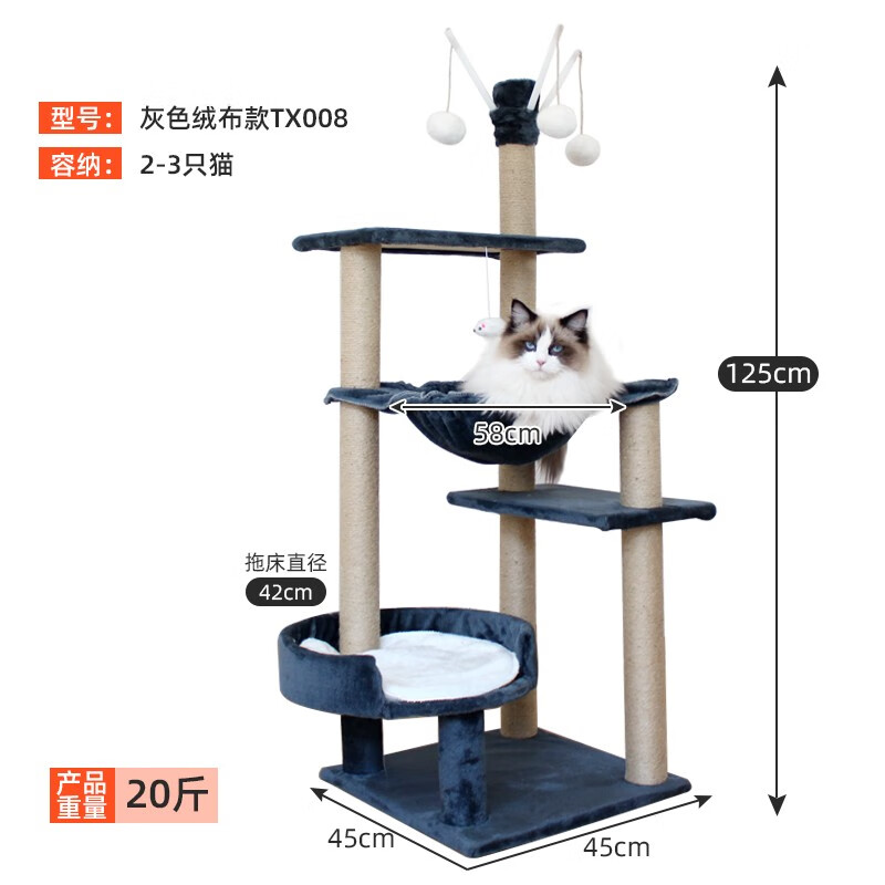 大型麻绳爬架猫抓柱猫爬架小户型猫窝麻藤猫架猫树一体猫咪猫抓板 深灰色 四季通用灰TX008 猫爬架
