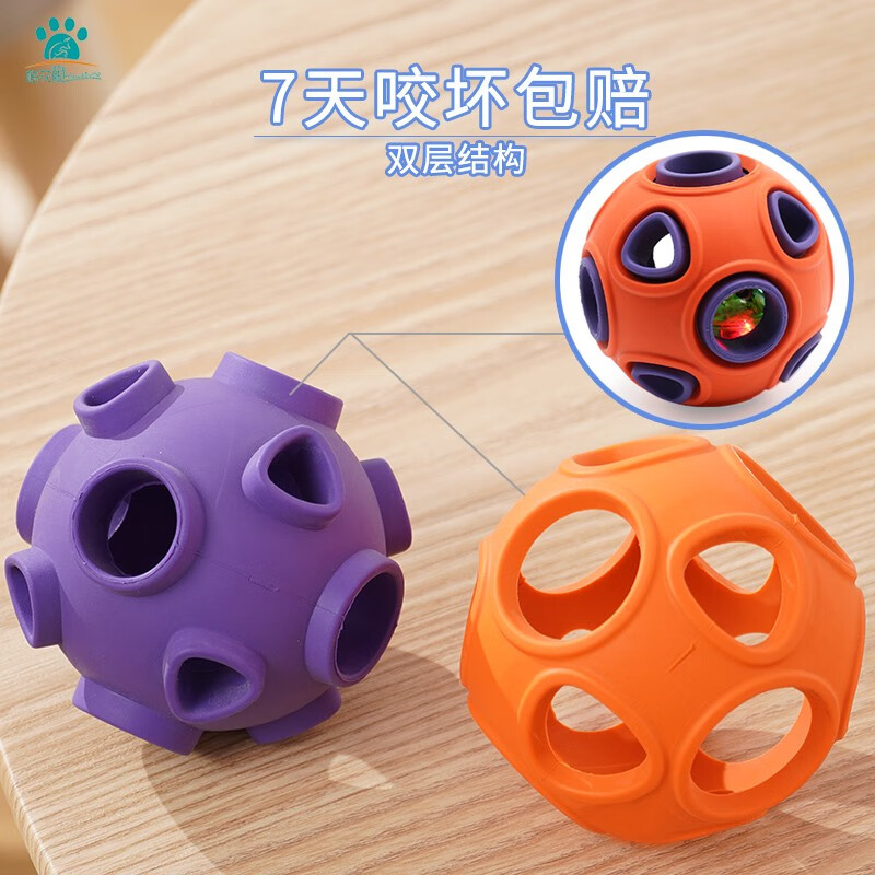 么哇(MEWAJUMP)大号发声海葵球桔紫色 互动训练狗狗玩具解闷洁齿耐咬宠物玩具球 双层结构适用金毛边牧