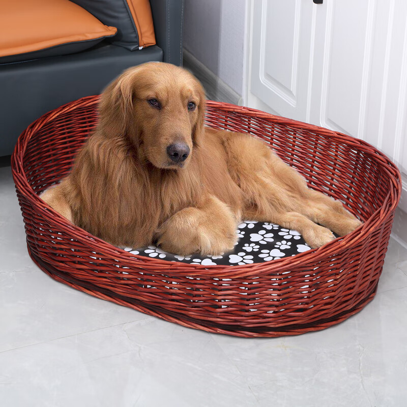 昌炅狗窝夏季凉窝柳藤编狗窝四季通用猫窝可拆洗大中小型犬金毛泰迪窝 原色 垫子 二号;83*56[适合40斤内宠物]