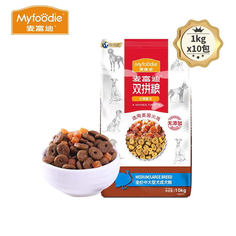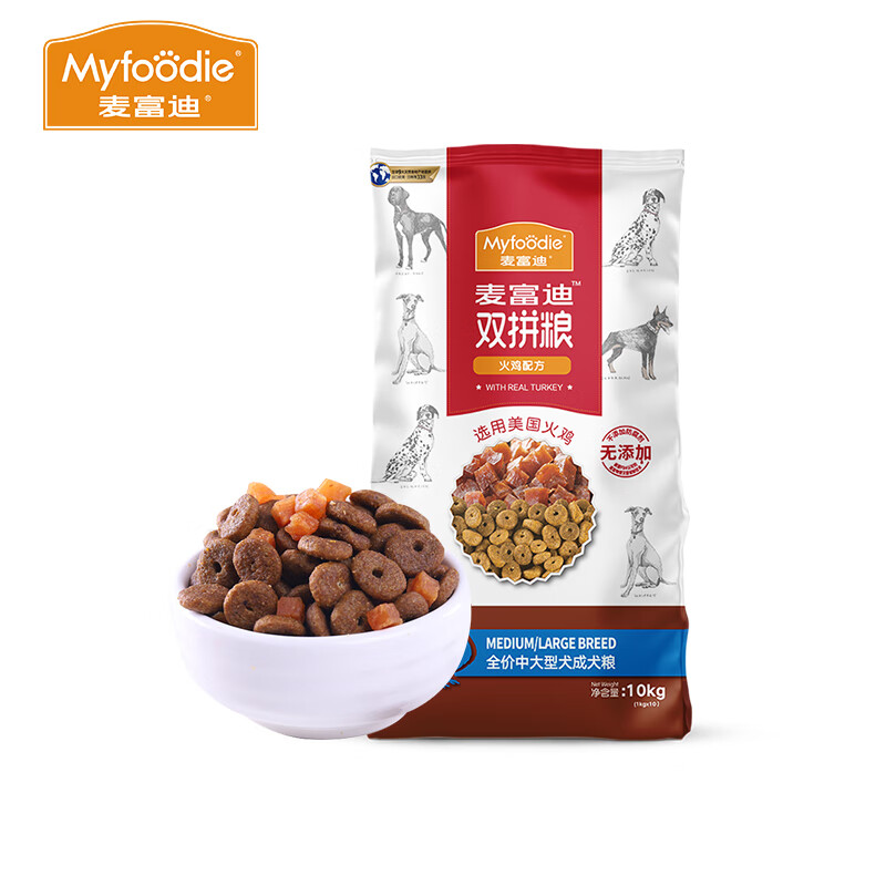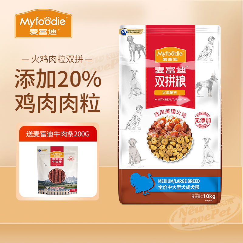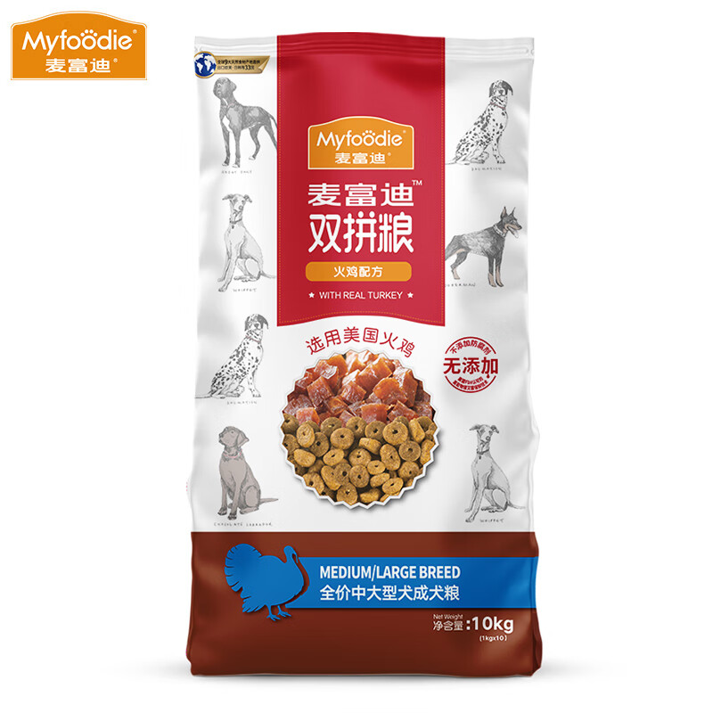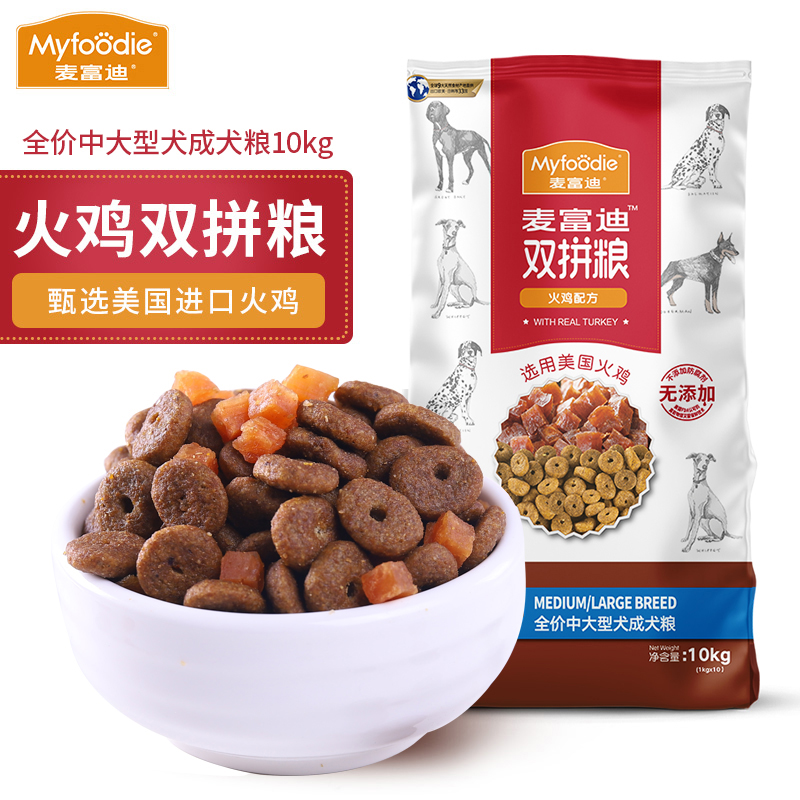 麦富迪Myfoodie火鸡肉粒双拼狗粮泰迪金毛萨摩耶柯基天然犬粮 中大型犬成犬10kg