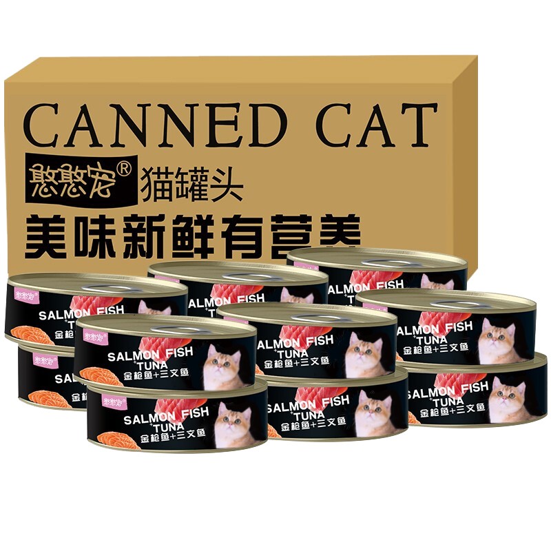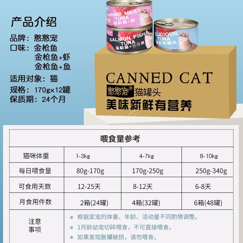 华元宠具(hoopet)憨憨宠猫罐头猫湿粮幼猫成猫猫咪零食 170g*12罐装 金枪鱼 叁文鱼