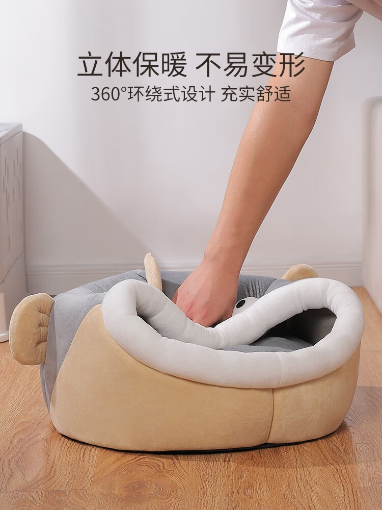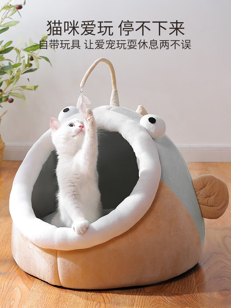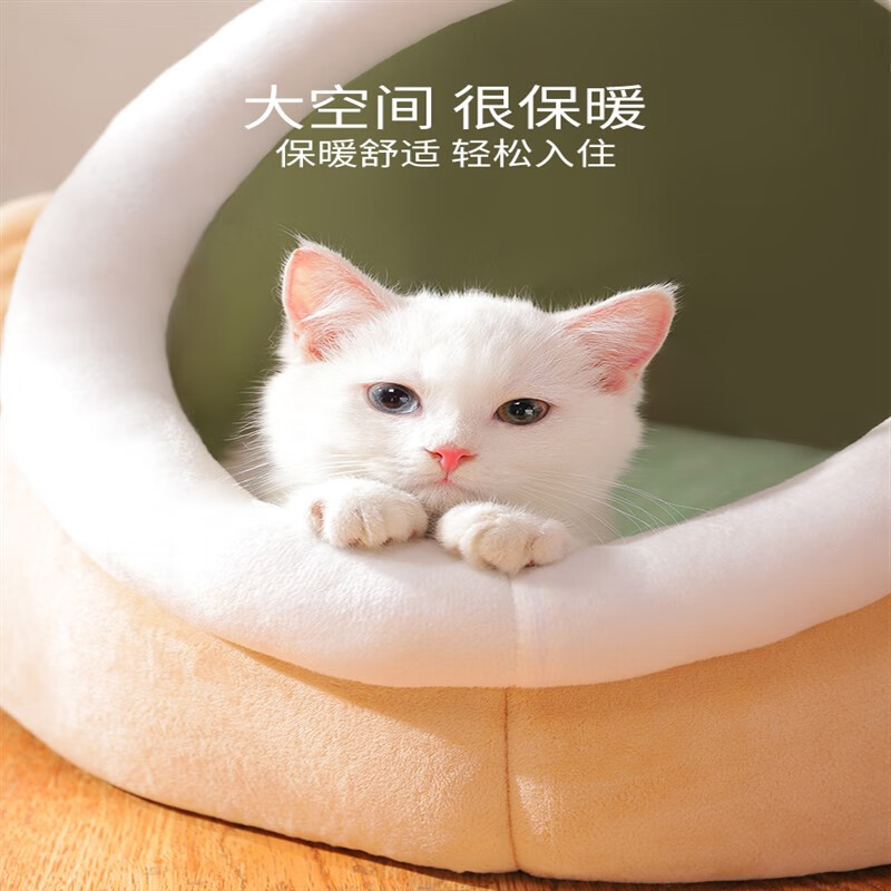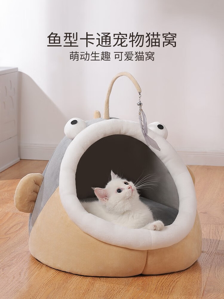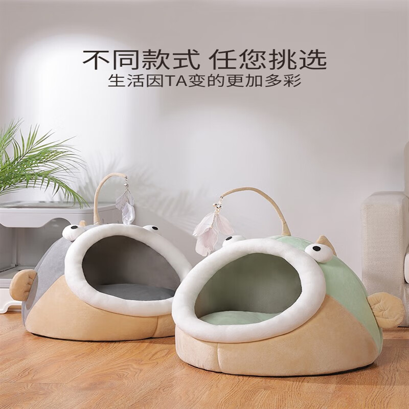 凛东猫窝冬季保暖猫咪半封闭式四季通用房子窝猫别墅泰迪狗窝宠物用品 灯笼鱼绿色毛球款 中号6斤内猫狗