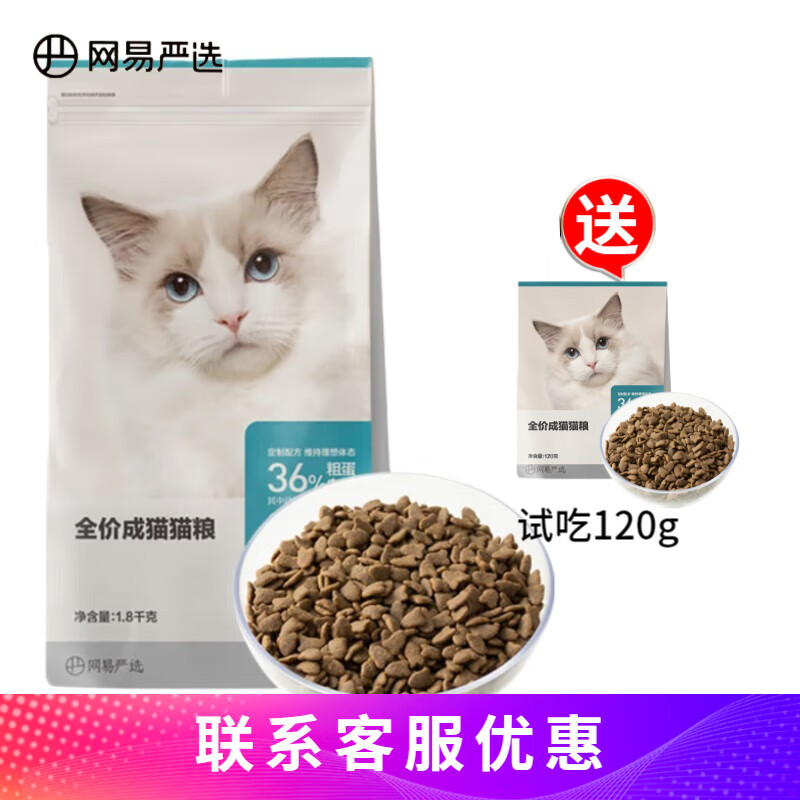 网易严选全价成猫粮 宠物猫主粮猫咪蓝猫美短英短毛一岁以上成年期 全价成猫粮1.8kg
