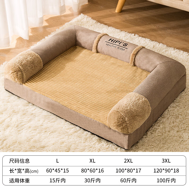 嬉皮狗狗窝子四季通用可拆洗垫大型犬狗狗床冬季保暖沙发床冬天狗狗用品 秋冬三靠款【卡其色】 2XL(外径长宽高:100*80*17)