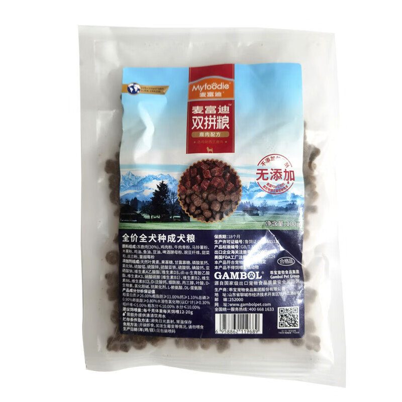 麦富迪牛肉双拼狗粮 通用型成犬粮10kg小型中大型犬金毛泰迪萨摩耶狗粮20斤 无谷鹿肉双拼粮试吃100g