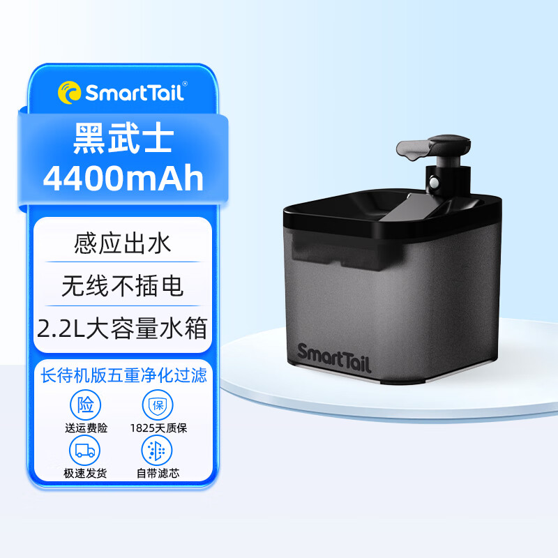 SMARTTAIL猫咪智能饮水机无线不插电自动循环过滤流动喝活水小狗宠物喂水器 黑武士-升级款4400mAh-待机126天