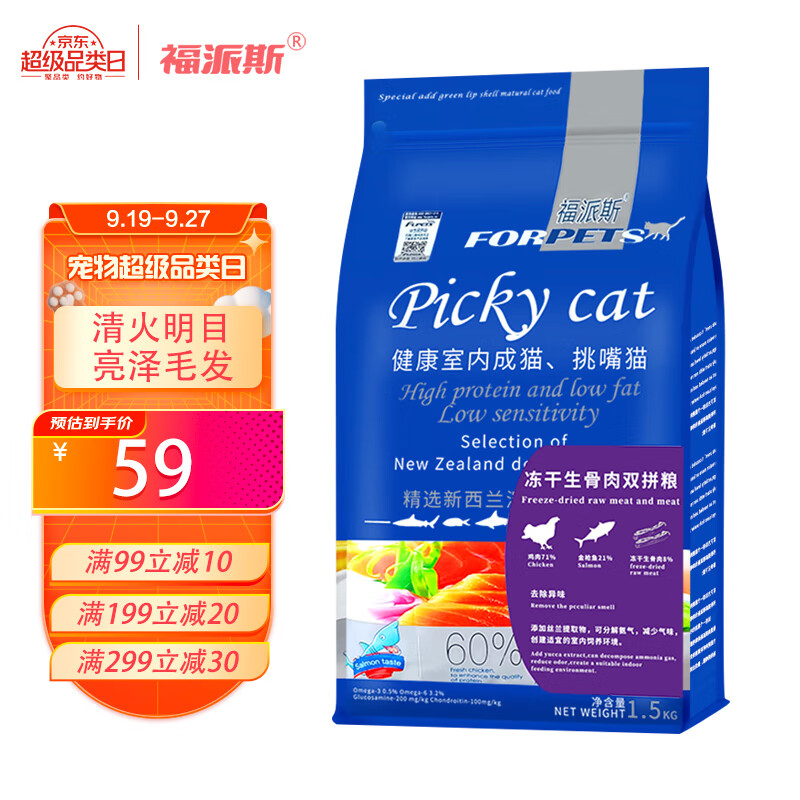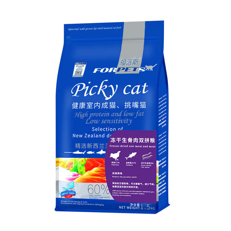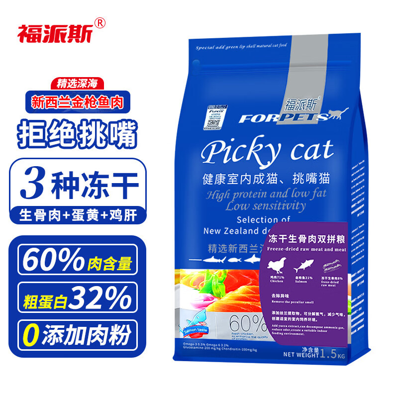 福派斯全价冻干双拼猫粮1.5kg 宠物主粮幼猫成猫通用粮猫咪食品金枪鱼肉