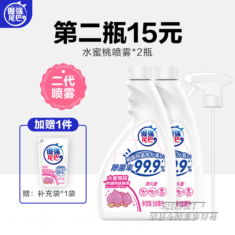 华元宠具倔强的尾巴宠物除臭剂猫砂除味去猫尿神器狗狗猫咪消毒液喷雾 水蜜桃味*2 补充液*1 500ml*2 4